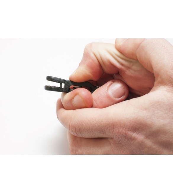 Il perno centrale che in fase di chiusura della pinzetta si posiziona nel suo alloggiamento, permette di collocare sulla lenza madre qualsiasi appendice come braccioli, lampade strobo, piombi guardiani, teaser, ecc…