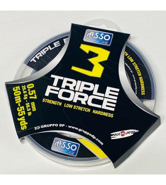 Asso Triple Force è un monofilo ad alta tecnologia la cui peculiarità principale è l'elevatissimo carico di rottura.