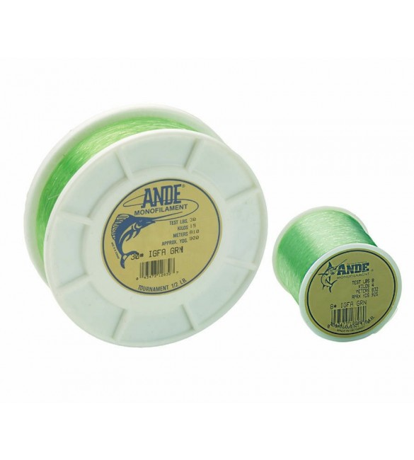 Il monofilo ANDE TOURNAMENT prodotto solo nel colore verde smeraldo, è fatto con diametri speciali che danno al pescatore la sicurezza che in gara o durante la conquista di un record, questo monofilo sia perfettamente conforme agli standard IGFA e quindi omologato IGFA-MGFA-EFSA.