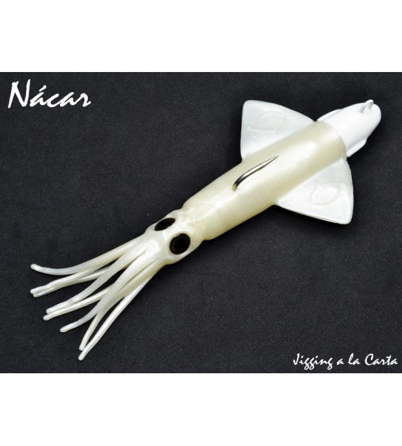 Il modello CALAMAR JLC® (designo industriale registrato), è un'esca che offre realismo insolito, navigazione e luminosità sott'acqua, il che lo rende una vera rivoluzione negli artificiali di tipo e forma cefalopodi, così simile un calamaro dal vivo per i suoi movimenti caratteristici e unici, cambiando colore sott'acqua.