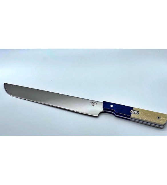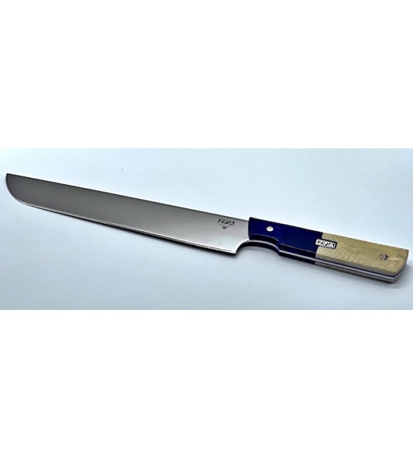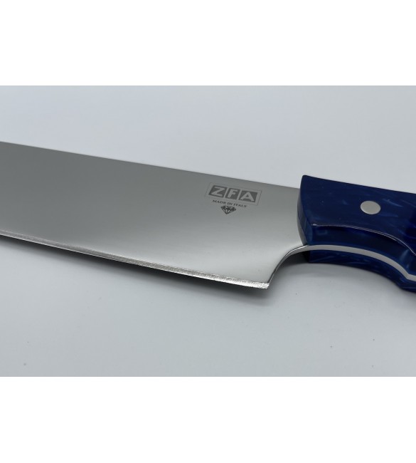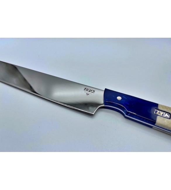 Coltello Acciaio YELLOFIN SASHIMI 42 LAMA Cm 25,5 in RWL 34 ZFA BLU WHITE high quality' Made in Italy 100%