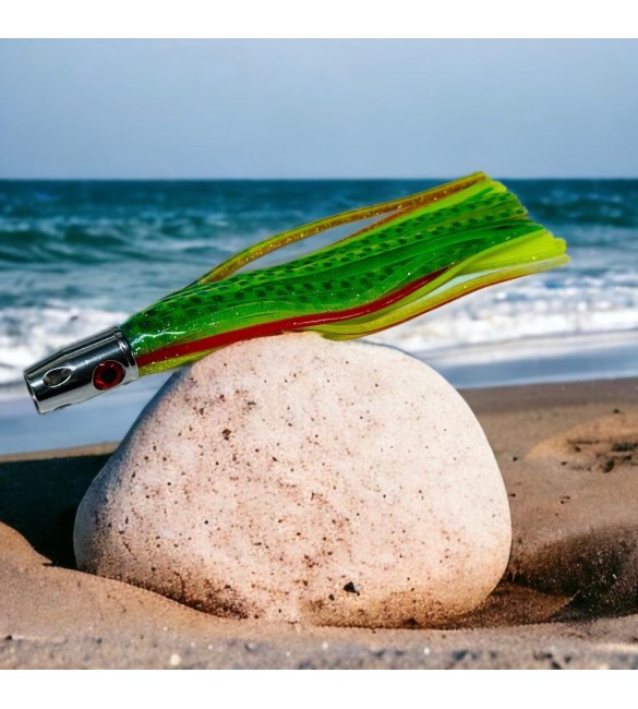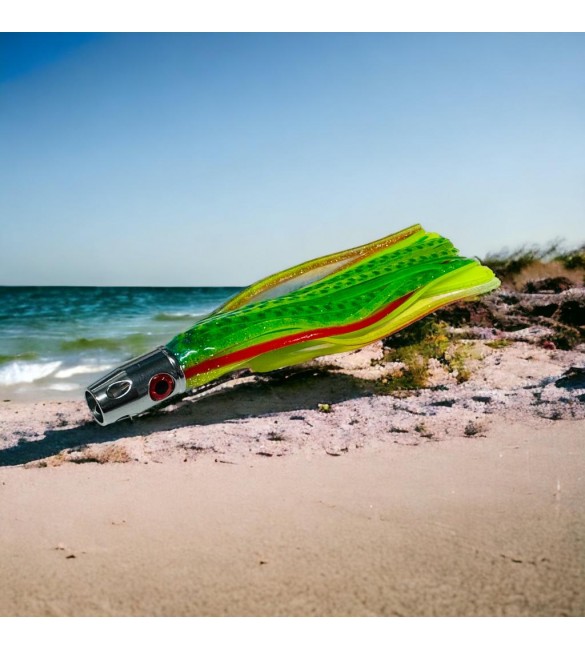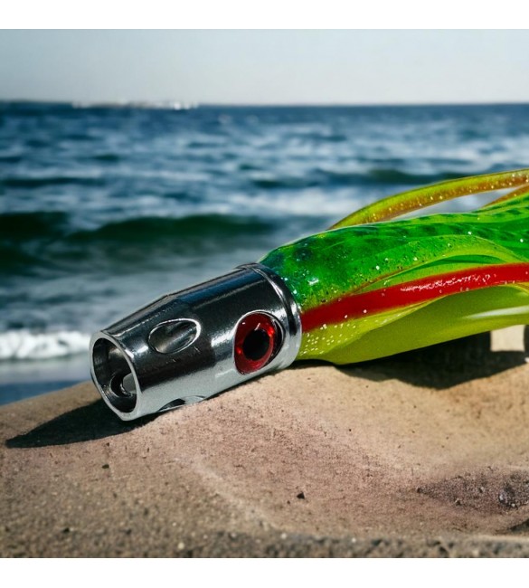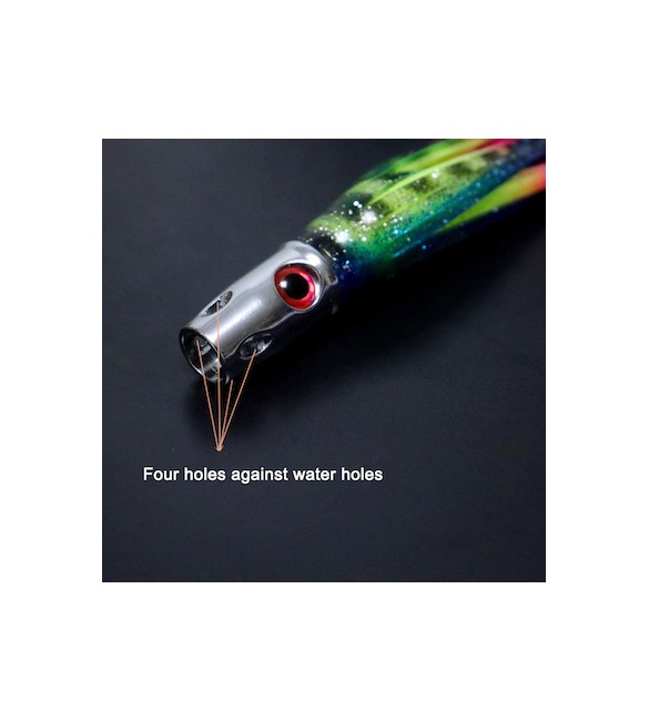La scia di bolle e la vibrazione sonora creata dai getti accoppiati alle doppie gonne in vinile in 6 colori caldi attirano i predatori da lontano: