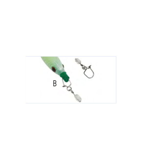 Moschettone ideale per il collegamento degli artificiali per la pesca dei cefalopodi.