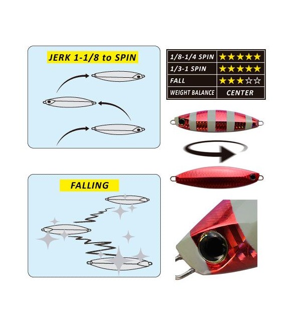 Ha una forma asimmetrica che aiuta ad avere una caduta irregolare e grazie alle loro colorazioni creano una “flashing action”, una forte attrazione per i predatori.