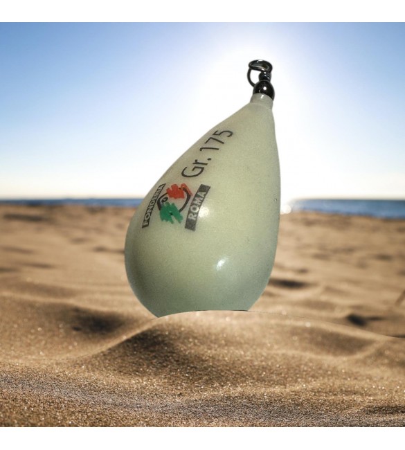 PIOMBO GR 125 BOLENTINO PERA CON GIRELLA PLASTIFICATO EXTRA FOSFORESCENTE BIANCO