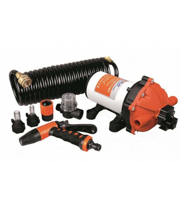 Kit pompa lavaggio SeaFlo completo di pistola, tubi e accessori.