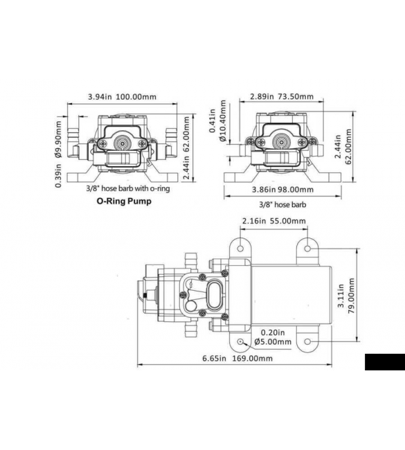 POMPA AUTOCLAVE SEAFLO MINI 12V 3,8 LTM BOBBA 3/8