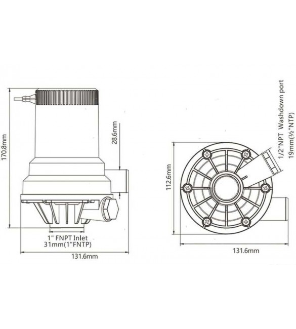 Pompa ad alte prestazioni per vasche del pescato, portata 1600 GPH (6054 LPH) e prevalenza 4,2 m.