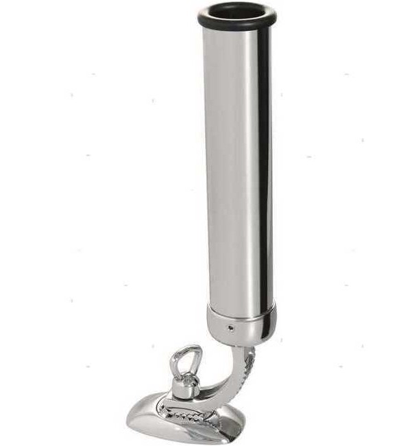 Supporto portacanne orientabile in Ottone Cromato con base piana e boccola in gomma a protezione della canna.