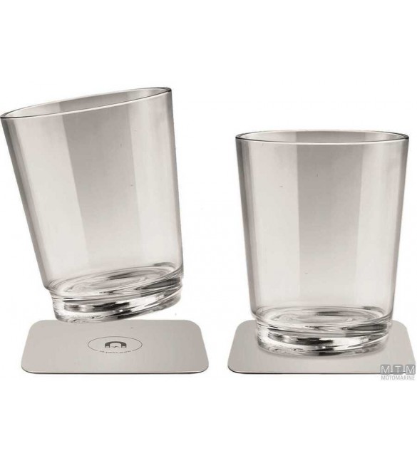 Eleganti bicchieri Silwy con pratici magneti integrati sul fondo che ne rendono sicuro l’appoggio anche quando il mare è mosso.