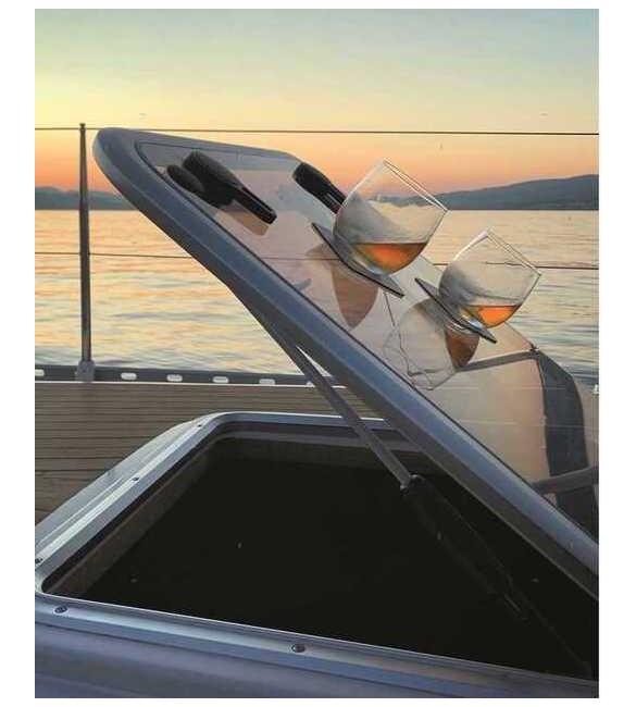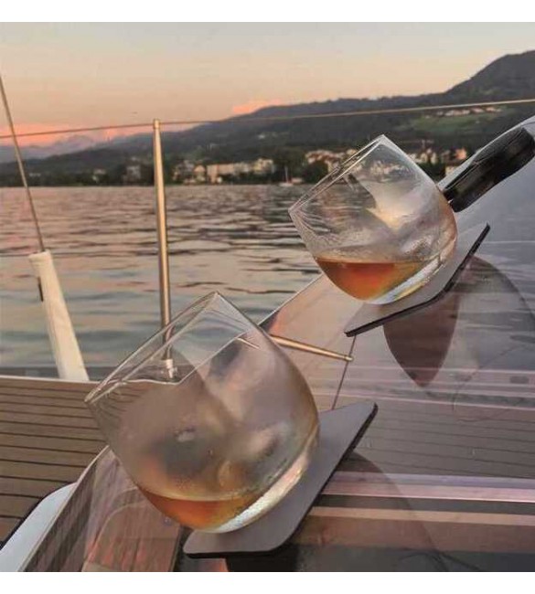 Eleganti bicchieri da whisky Silwy in cristallo di alta qualità con pratici magneti integrati sul fondo che ne rendono sicuro l’appoggio anche quando il mare è mosso.