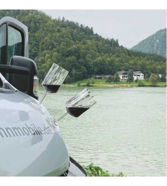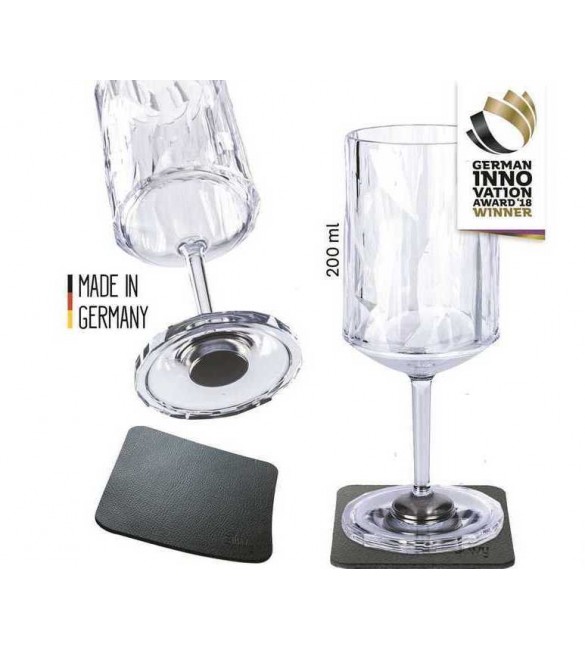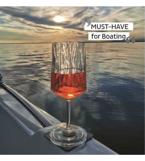 Eleganti calici da vino Silwy in plastica di alta qualità con pratici magneti integrati sul fondo che ne rendono sicuro l’appoggio anche quando il mare è mosso.