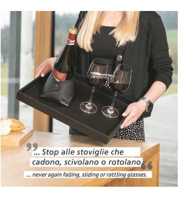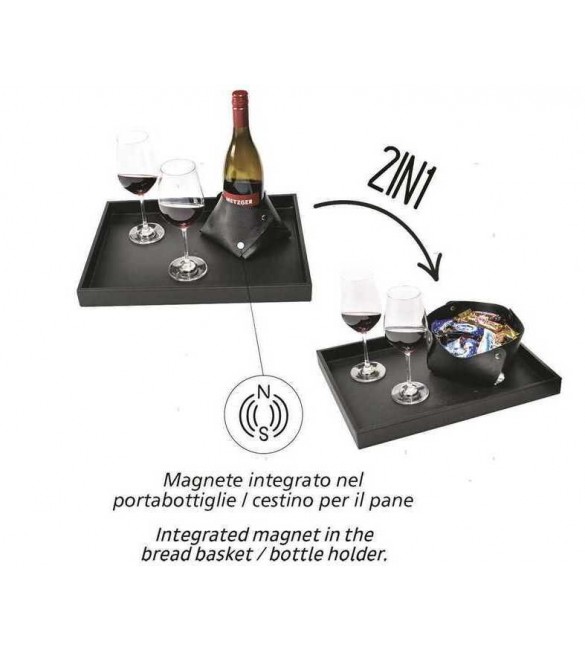Portabottiglie trasformabile in cestino per il pane con magneti integrati e superficie antiscivolo che aderisce perfettamente al vassoio metallico della linea Silwy.