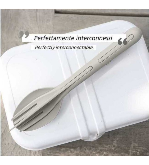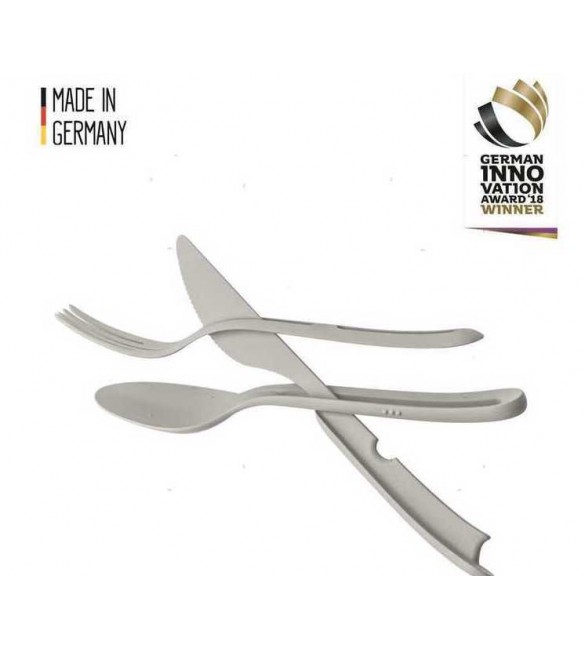 Set di posate Tricky TO-GO composto da tre pezzi (coltello, forchetta e cucchiaio) in robusta plastica Hightech.
