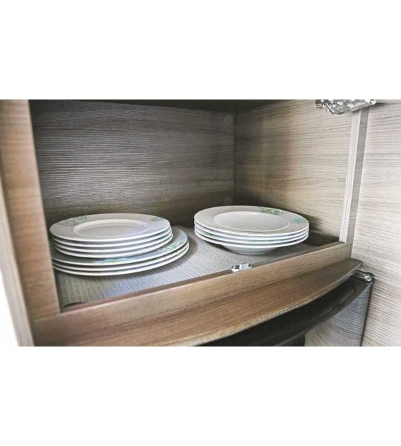 I piatti, le posate ed i bicchieri rimangono fermi senza muoversi o scivolare, anche se la superficie d'appoggio risultasse inclinata.