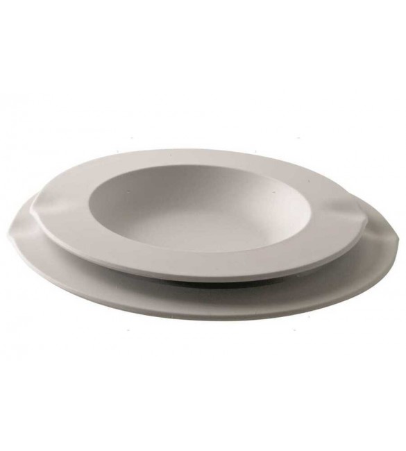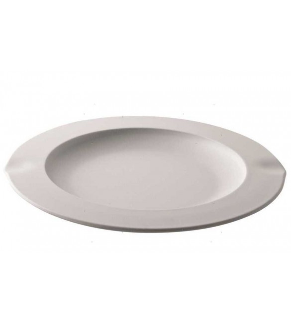 Costruiti in resina melamminica ultra resistente, sono dotati di due fossette modellate come un’impronta di pollice che possiedono la duplice funzione di trasportare il piatto con praticità e appoggiare le posate durante il pasto.