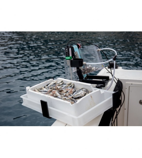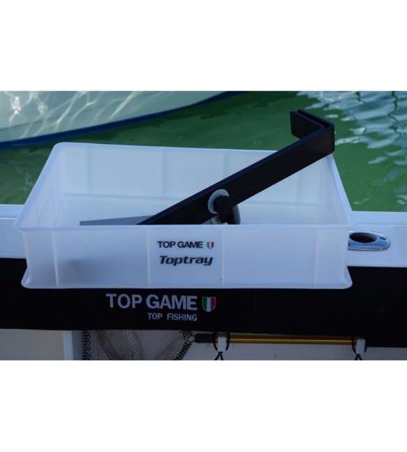 La cassetta Toptray portaesche inserita nella barra di accoppiamento permette una comoda tagliatura e posizionamento delle esche nei carousel dei pasturatori senza lasciare in barca nessun segno di sporcizia e sangue.