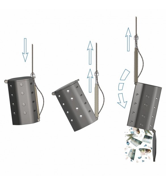 Riempire di pastura, sardine etc.etc., bloccare il coperchio e calarlo dalla barca con un cordino rigido alla profondità desiderata.