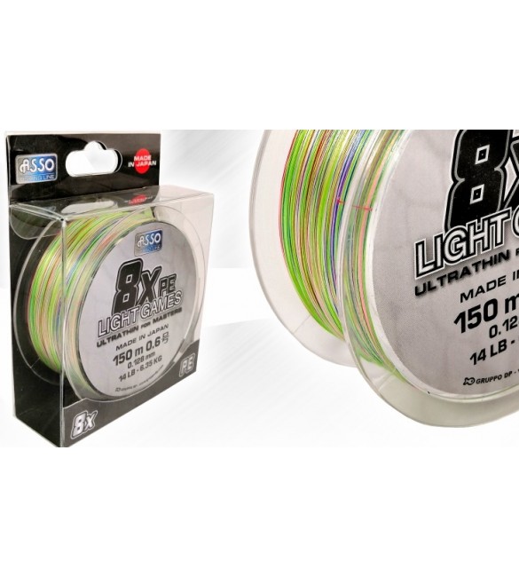 IL Trecciato Asso 8x Light Games è una treccia a 8 capi composta da fibre di PE ad alta densità ultrasottili e resistenti, perfettamente rifinita.